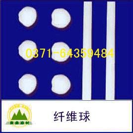 纖維球是以纖維球直徑的長度為節(jié)距,用細(xì)繩將纖維絲束扎起來,在扎接中間的中央處切斷纖維絲束,形成大小一致的球狀纖維濾料。特點(diǎn)是彈性好、耐機(jī)械變形。