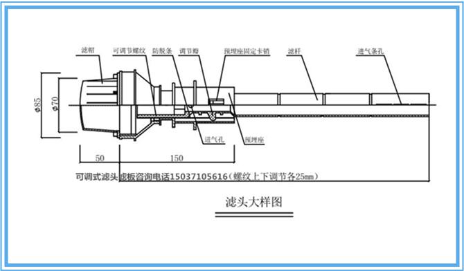 濾頭通過濾桿上絲扣安裝在固定濾桿上,濾桿和固定環(huán)之間安裝墊片。
